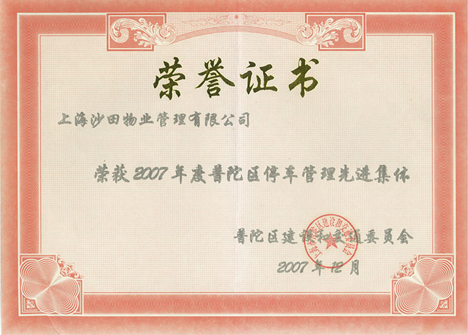 2007年度普陀區(qū)停車管理先進(jìn)集體